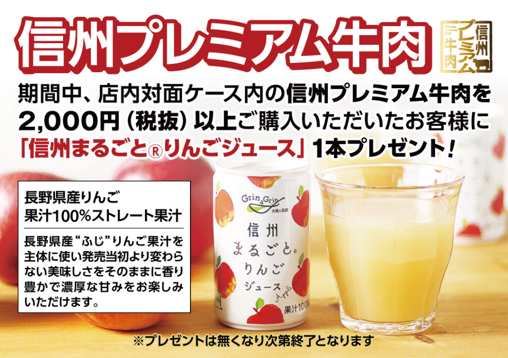 「信州の恵みを味わう特別な4日間 信州フェア」 2025-11-20 チラシ(本店) 「2025年11月21日(金)~11月24日(月・祝) 4日間限定のお買得情報!」さらに「信州フェア「信州まるごとりんごジュース」プレゼント