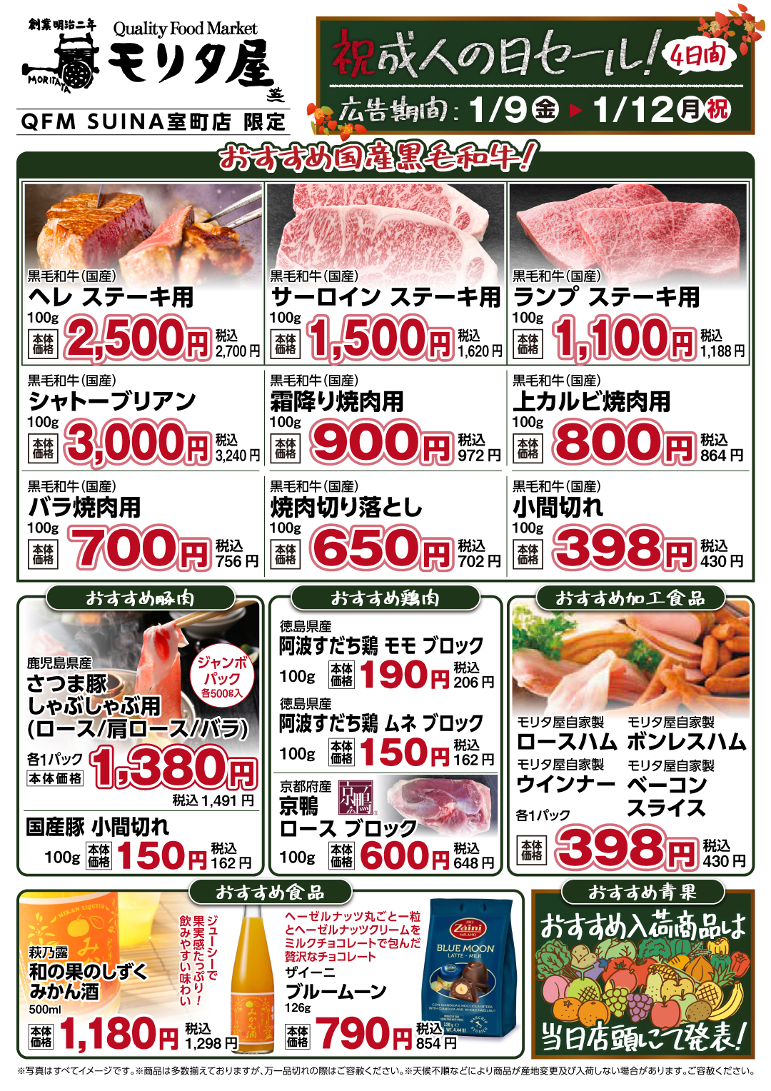 1月9日(金)~12日(月祝) 祝成人の日セール