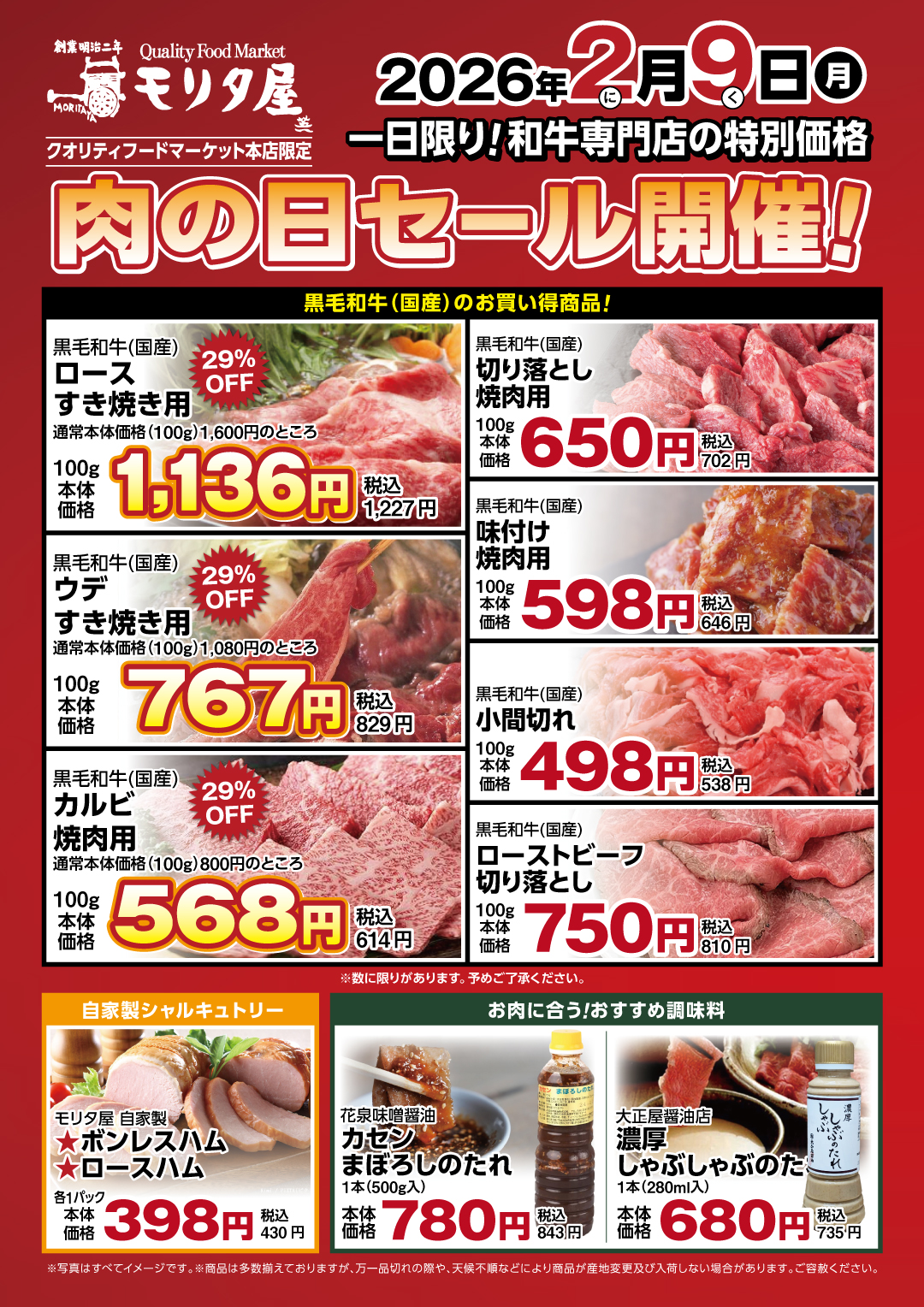 📣2/9(月)『肉の日🥩セール』を 一日限定にて開催‼️🎉
