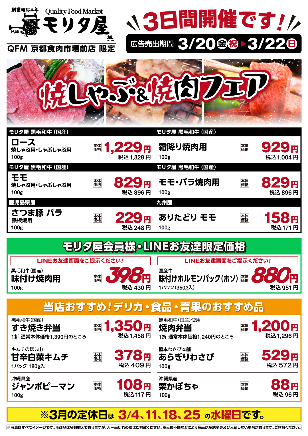 3月20日(金祝)~3月22日(日) 焼しゃぶ&焼肉フェア