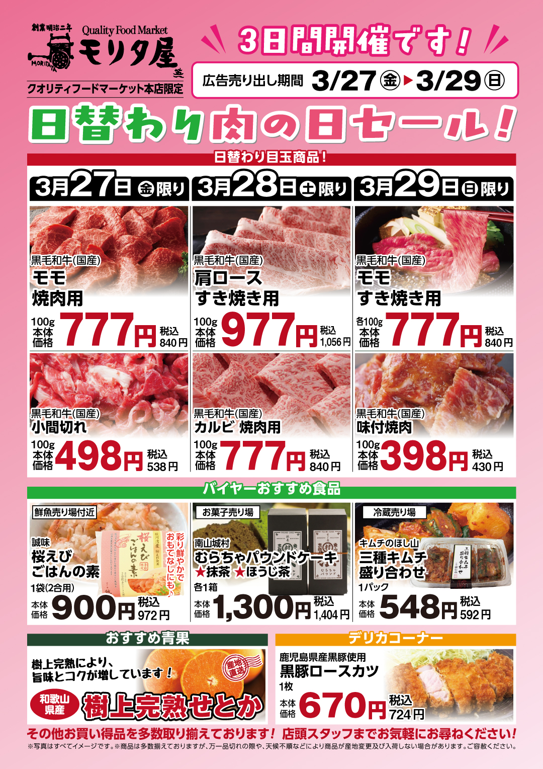 📣3月27日(金)~3月29日(日)の3日間『肉の日セール』を開催します‼️🎉