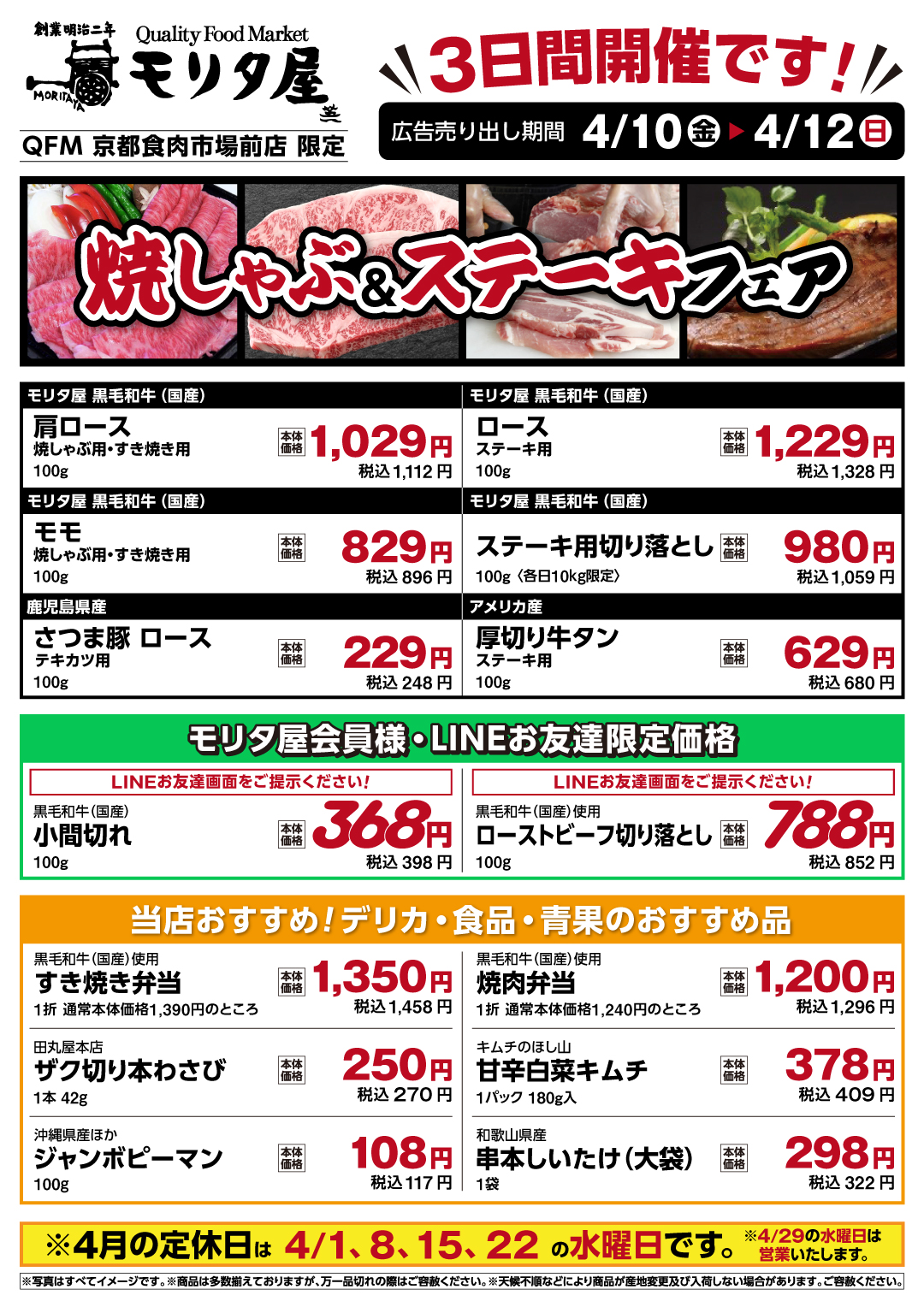 📣4月10日(金)~4月12日(日)『焼しゃぶ&ステーキフェア』を開催‼️🎉